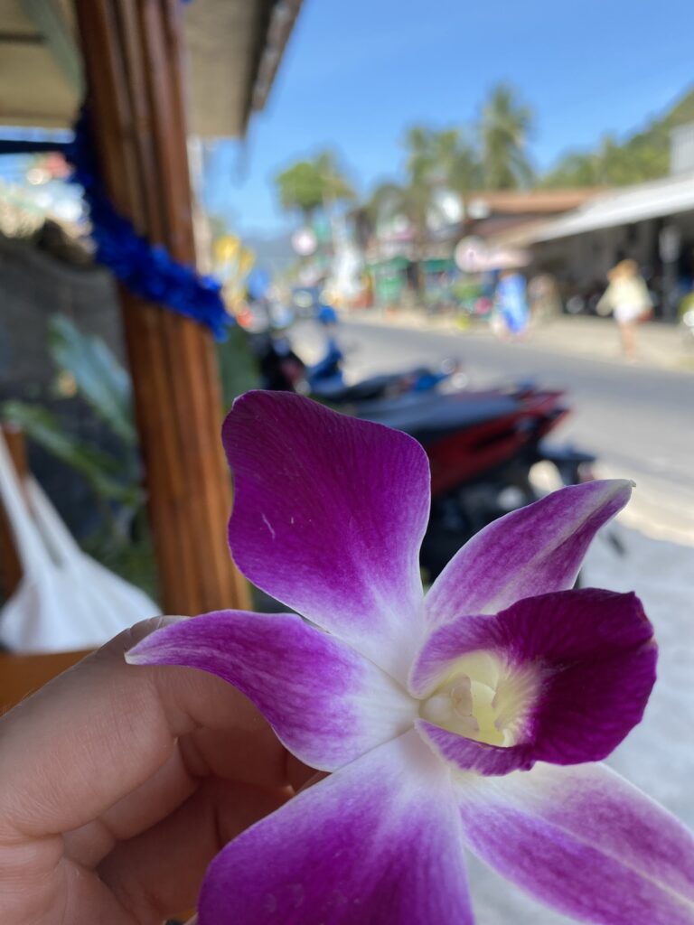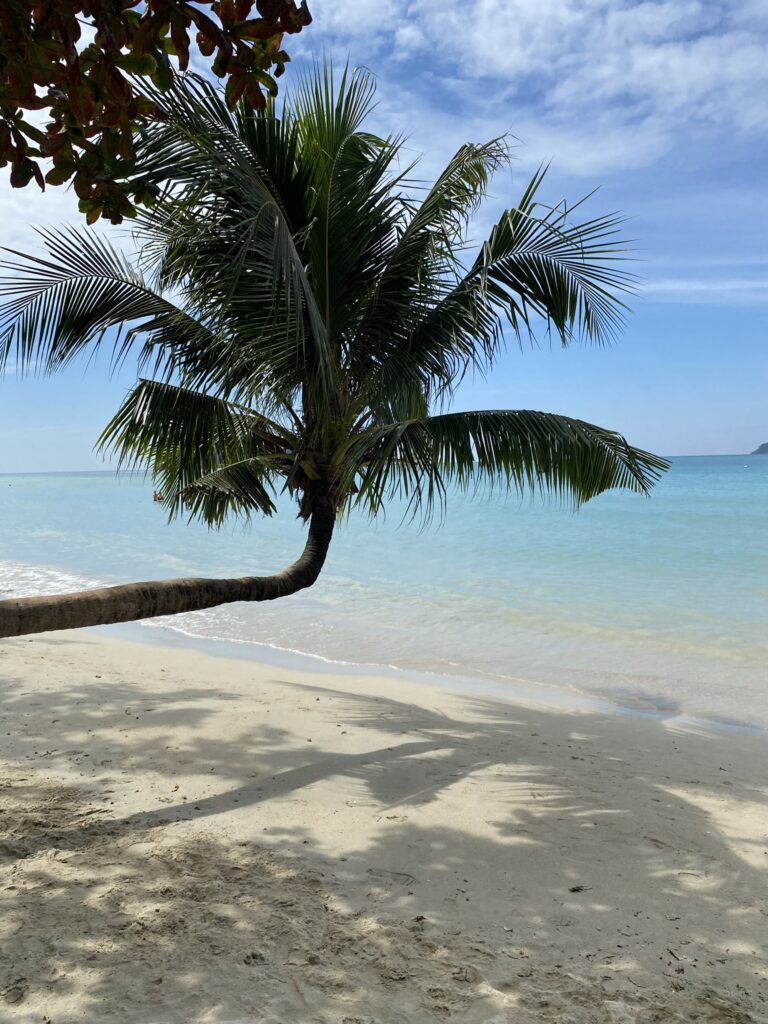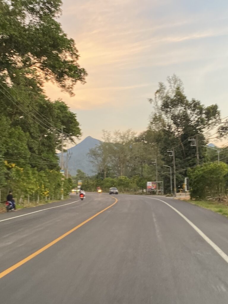 Pieni pala rauhaa tähän väliin Pattayan vilskeen jälkeen. Kumpuilevaa maastoa, taustalle vuoret ja edessä kirkas meri. Kapean kylätien varren viipyilevä iltapäivätunnelma, palmut ja vehreä sademetsä. Näitä asioita olen kaivannut kaupunkielämän aikana.