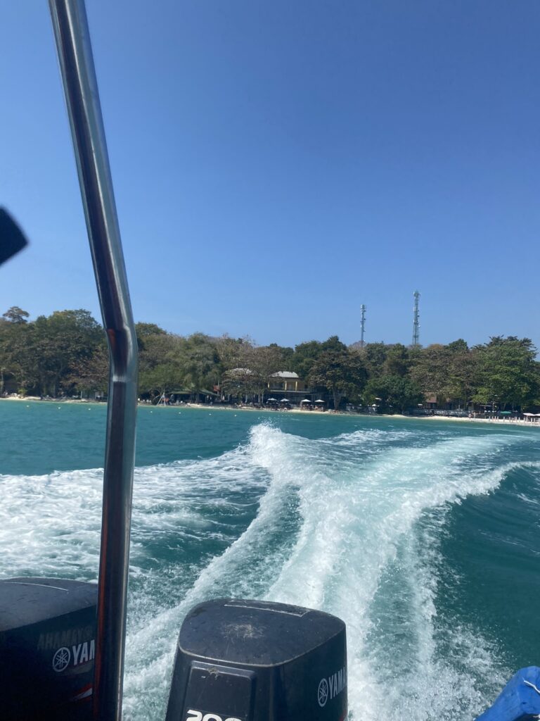 Iskettyäni 1000 bahtia hänelle käteen, alkoi tapahtua. Henkilökunta juoksutti laukut mopon sivutarakalle ja hyvä ettei meitäkin sinne kädestä pitäen, sekaan vaan ja sitten mentiin kaasu pohjassa laiturille, jossa meitä totta tosiaan odotti pikavene ja kuljettaja. Laukut ja madamet ja sir kyytiin ja talla pohjaan uudemman kerran.